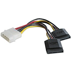 0.15m 5.25" (LP4) to 2x 15pin SATA Power Adapter