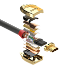 Gold Line High Speed HDMI cables feature triple shielded construction with 24AWG OFC conductors for premium performance and corrosion resistance. High quality 24K gold plated contacts and connectors maintain optimal signal integrity and maximum reliability.