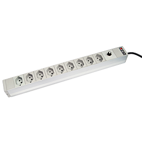 19 inch socket 1U with 9x Swiss sockets with practical stainless steel brackets for safe fixing.