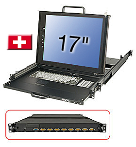 1U high keyboard (CH layout), touchpad,17" LCD screen and 8 Port KVM for your 19" server cabinet