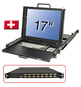 1U high keyboard (CH layout), touchpad,17" LCD screen and 16 Port KVM for your 19" server cabinet
