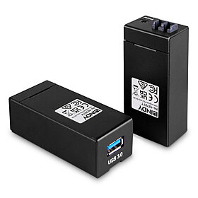 The Lindy 200m Fibre Optic USB 3.0 Extender supports far longer distances than standard copper cables, using standard off the shelf LC duplex fibre, whilst retaining SuperSpeed transfer rates of up to 5Gbps. The Extender is a two part hardware solution comprising of a transmitter that connects directly to your computer and receiver that connects to the USB peripheral. Since the Extender uses fibre optic cable this rules out the possibility of any electrical interference on the extended signal and makes it the perfect solution for sensitive environments.