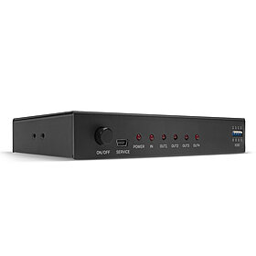 The Lindy 4 Port HDMI® 10.2G splitter is a low-cost, compact solution for distributing high quality 4K Ultra HD across four displays from a single source device. Supporting crystal clear 3840x2160@60Hz 4:2:0 resolutions, this splitter is ideal for retail or sports bar installations, or providing multi-screen playback in conference rooms. A simplistic EDID management system ensures hassle free installation, with optimum compatibility for a variety of displays, when connected to a wide range of source devices including media players, set-top boxes and games consoles.