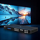 As well as providing a professional 4x4 matrix switching function, this device can create customisable wall displays in a variety of layouts. This provides the user with a range of flexible display options for their installation and allows the device to be used in a range of specialised environments; including transport hubs, points of sale and hospitality. Analogue audio ports also allow for 2-channel audio extraction, to add immersive stereo audio to the content on screen.
