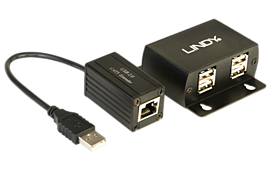 The Lindy USB 2.0 Cat.5 Extender extends the distance between four USB peripheral devices and the computer up to distances of 50m using a single STP Cat.5e/6 or higher network cable.
