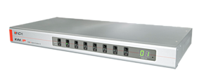 Switches between up to 8 PCs from one display, keyboard and mouse