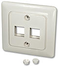 Fitted socket DE with cover frame for housing two keystone modules based on the German system .