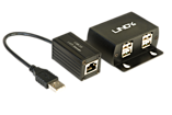 The Lindy USB 2.0 Cat.5 Extender extends the distance between seven USB peripheral devices and two computers up to distances of 100m using a single Cat.5e/6 or higher network cable.