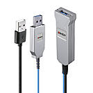 The Lindy Fibre Optic USB 3.0 Cable supports far longer distances than standard copper cables whilst retaining SuperSpeed transfer rates of up to 5Gbps. Up to 3 cables can be connected in series up to a length of 300m. In addition, a combination with the 30m version No. 43345 is possible.