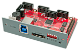This PCI (32 Bit PCI) host adapter can be used to expand a PC with four external SATA II interfaces. This card supports a 32bit, 66 MHz Interface on the host side and four independent SATA-II ports on the device side.