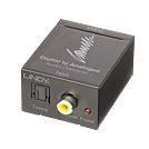 This very useful device can convert either digital optical TosLink or coaxial SPDIF signals to an analogue stereo 3.5mm and dual phono output ports. Both optical and coaxial cables can be connected at the same time and a simple switch determines which signal is active. We do not recommend the use of headphones directly with this product, please connect the converter to a AVR and use the headphones through this.