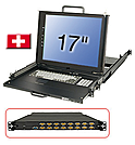 The LINDY Modular KVM LCD Terminal is a great space saver, featuring a high-quality 17" Active Matrix TFT LCD display, notebook style CH keyboard with separate numeric keypad, and touchpad all in just 1U! The complete drawer can be slid in and out of a 19" rack, while the LCD can be slid out separately from the keyboard drawer and flipped up in front of the rack. This allows the cabinet door to be closed and locked leaving the display to remain visible. The LCD Terminal also has a fully featured OSD (On Screen Display), allowing the easy set up and management of the console, and supports resolutions up to 1280 x 1024.