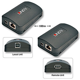 Using the LINDY USB 2.0 CAT5 Extender Pro you can extend the distance between your USB peripheral devices and computer up to distances of 100m using a single CAT5/6/7 network cable.
