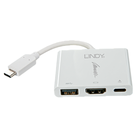 The Lindy USB 3.1 Type C to HDMI, USB & Power Delivery Converter allows users to maximise the functionality of a single USB 3.1 Type C port by connecting and simultaneously using an HDMI display and USB 3.1/3.0 SuperSpeed peripheral as well as a USB Type C power supply to your MacBook, ultrabook or notebook. The only requirement is that the computer supports the DisplayPort Alternate Mode.