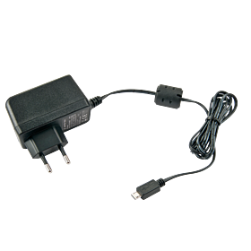 Power supply with USB Micro-B plug for charging USB devices with USB Micro-B connector, e.g. Smartphones - Level VI certified.