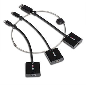 The Lindy USB Type C, mDP & DisplayPort to HDMI® 18G Converter Tether is an exceptional multi-AV solution, featuring individual USB Type C, Mini DP, and DisplayPort to HDMI® converters. These converters are securely attached to a 15cm diameter stainless-steel tether, providing easy access whenever needed. Equipped with a built-in clamp that fits around the display_s HDMI® cable, this tether is ideal for presentation or collaborative environments where multiple users require a variety of source devices and connections. This design ensures the adapters remain fixed in place, ready for the next user.