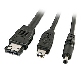 eSATAp to eSATA, USB Mini B & 5V DC Mini Jack Splitter Cable, 1m